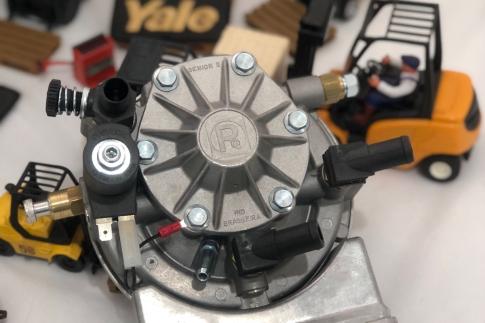 Redutor e vaporizador para GLP (gás liquefeito de petróleo), utilizado em máquinas e equipamentos industriais, sendo seu principal uso em empilhadeiras e máquinas de movimentação de carga com motor a combustão interna.