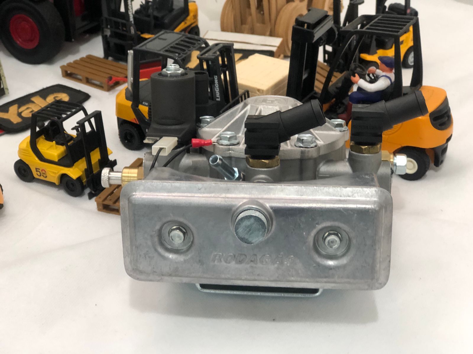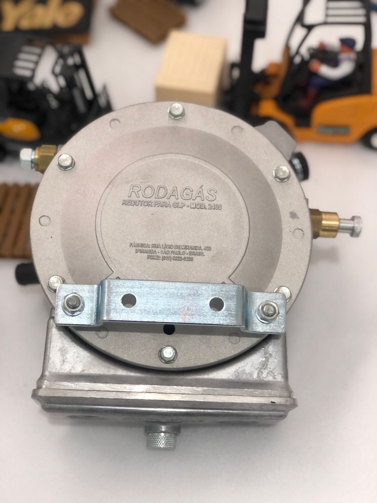 Redutor e vaporizador para GLP (gás liquefeito de petróleo), utilizado em máquinas e equipamentos industriais, sendo seu principal uso em empilhadeiras e máquinas de movimentação de carga com motor a combustão interna.